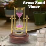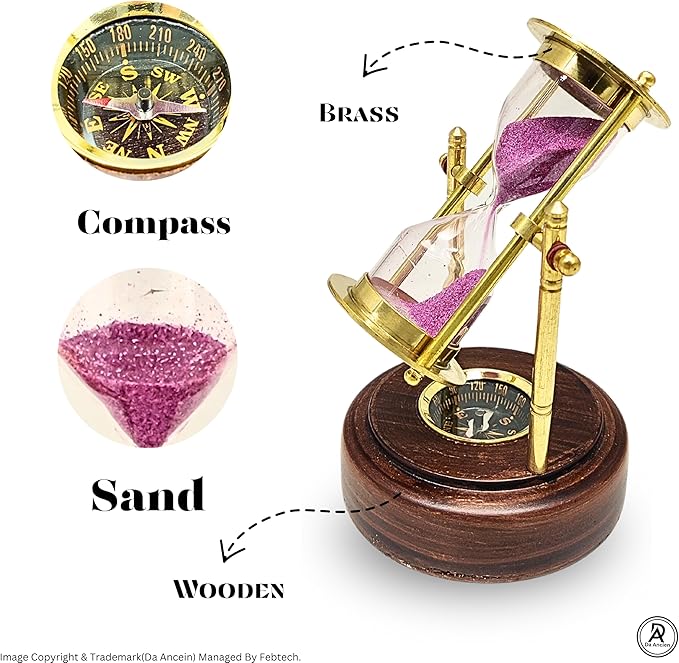 1-Minute Sand Timer with Compass – Antique Brass and Mahogany Hourglass with Purple Sand – Ideal for Desk Decor, Office Use, Meditation, Unique Gift for Collectors and History Enthusiasts