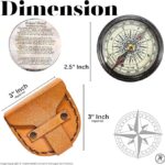 Antique 1885 Nautical Pocket Compass, 2.5-Inch Brass with Engraved Robert Frost Poem and Brown Leather Case Ideal for Navigation, Camping, Hiking, Travel, and Gift Giving