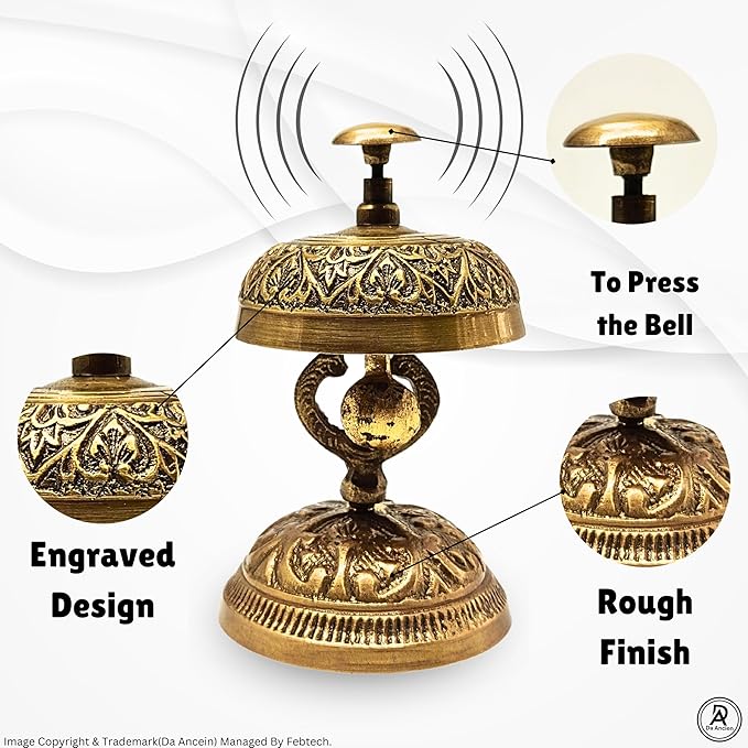 DA Ancein- Antique Ornate Desk Bell Solid Brass Nautical Table Bell Solid Brass Nautical Double Table Bell Desk Decorative Office/Hotel Décor