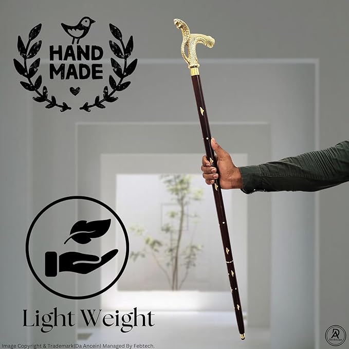 Da Ancein- Vintage Brass Serpent 36″ Walking Cane Antique Style Brass Snake Handle – Stylish and Elegant Outdoor Adventure Companion for Hiking and Camping